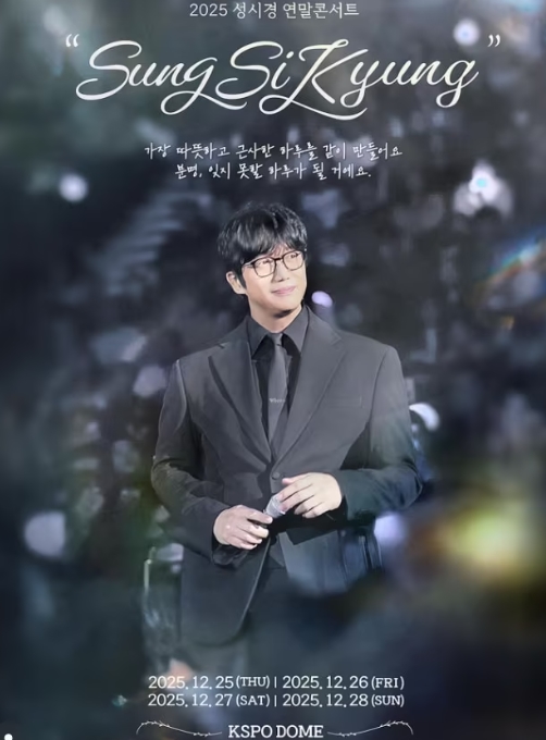 소속사에 따르면 성시경은 오는 12월 25일부터 28일까지 4일간 서울 송파구 올림픽공원 KSPO 돔에서 4차례 콘서트를 개최한다.