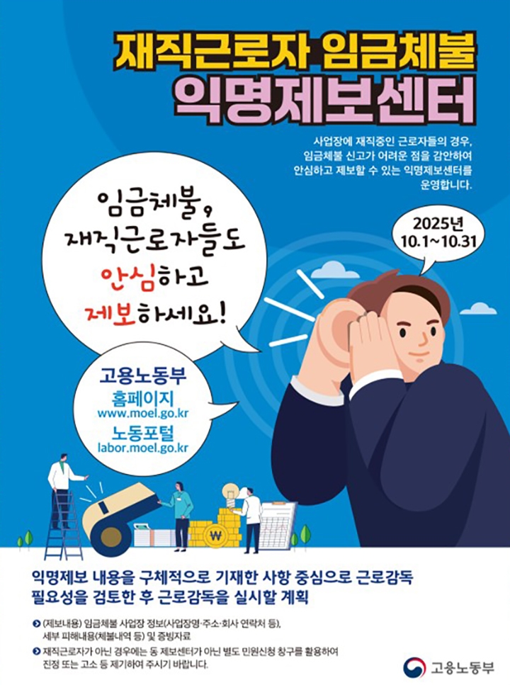 악성 임금체불 찾는다… 재직자 익명제보 근로감독 착수